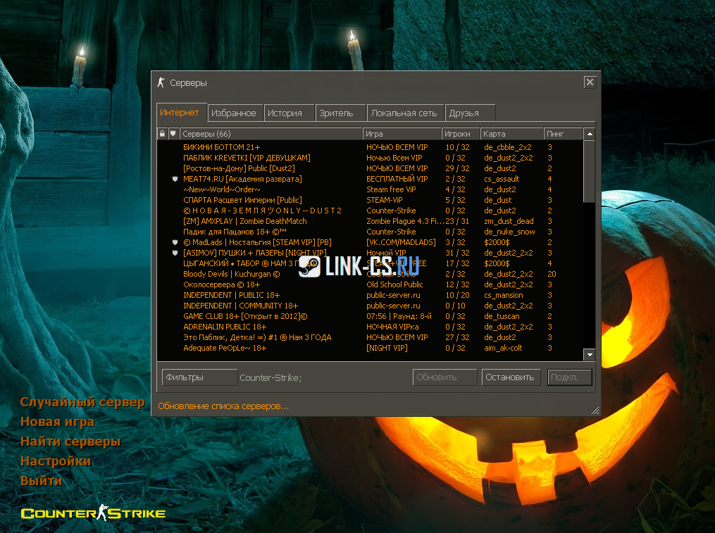 Кроме всех этих страшных визуальных обновлений в игру вошло и множество внутренних дополнений: имеются умные боты, с которыми можно поиграть на любой мапе, а так же легко и удобно настроить за счёт полезного меню — очередной повод скачать КС 1.6 Хэллоуин прямо сейчас. Для любителей онлайн игры имеется обширный поиск, в котором легко найти сервер на любой вкус. Качественная защита гарантирует полную безопасность при онлайн игре. А полная русификация позволяет общаться в чате по-русски, установить себе русский ник, а так же использовать кириллицу в консоле.